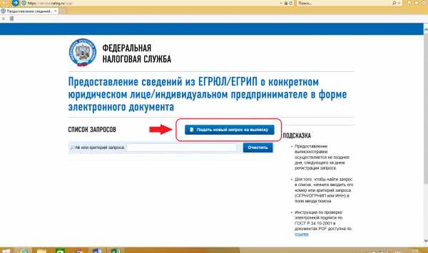 Авторизуемся и заходим в сервис получения выписок из ЕГРЮЛ/ЕГРИП. Нажимаем кнопку «Подать новый запрос на выписку».