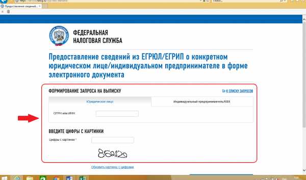 Далее сервис переводит нас в окно выбора: формирование выписки о юрлице либо об ИП. Выбираем нужную вкладку и заводим ОГРН (ОГРНИП) или ИНН того субъекта, сведения о котором мы хотим узнать. Нажимаем «Сформировать запрос».