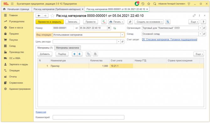 Проводки по счету «21»