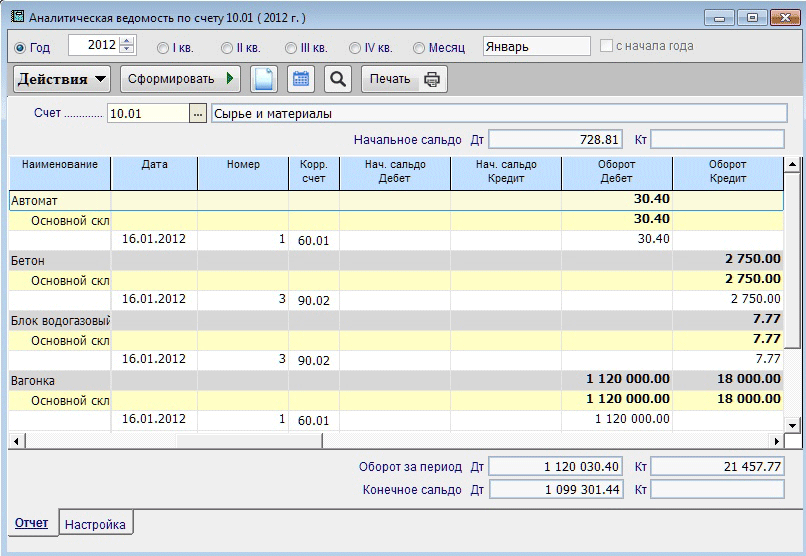 | 21 | 000 | Ввод начальных остатков: полуфабрикаты собственного производства | Ввод остатков |