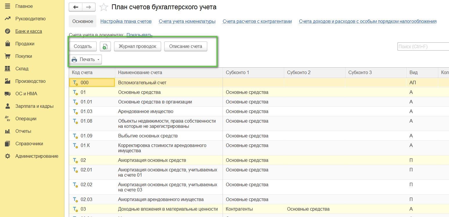 Настройка общей системы учета