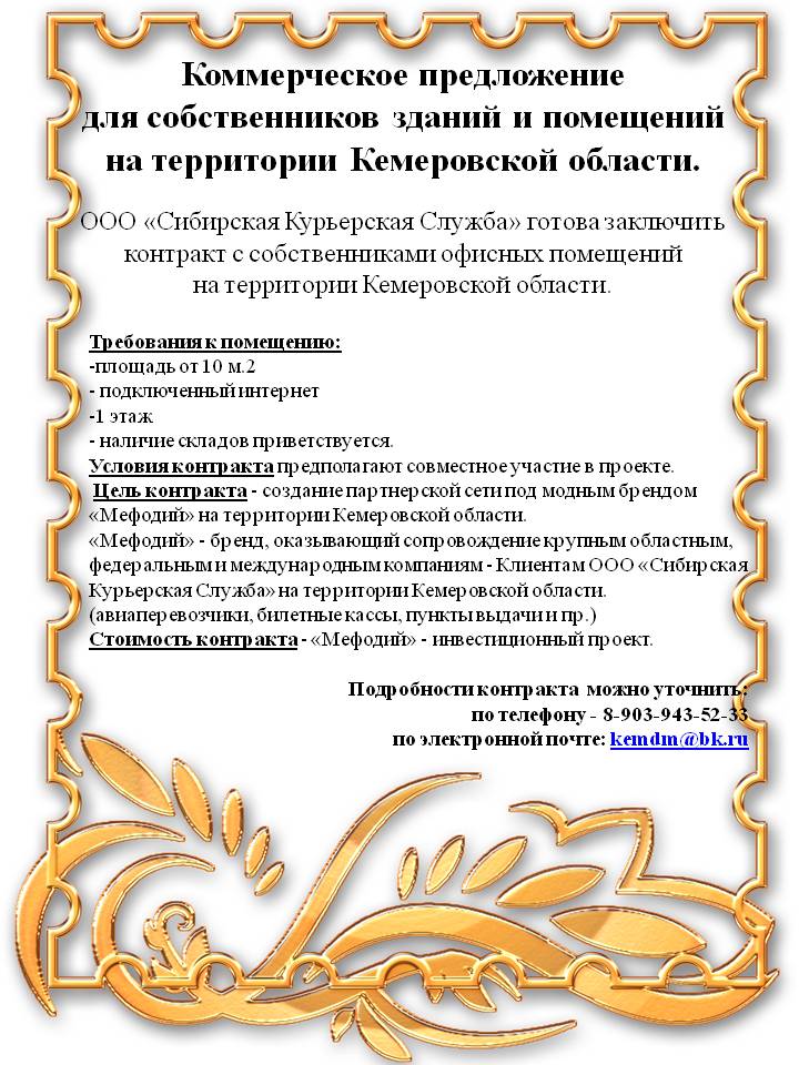 А также не стоит забывать и об оформлении КП: Как оформить коммерческое предложение так, чтобы арендодатель захотел его прочитать и смог понять его смысл