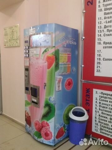 Вендинговый аппарат по производству и продаже молочных коктейлей. Характеристики: производительность, л/ч 60 порций коктейля, количество напитков 3, монетоприемник, количество стаканов — 0,4 л 300 шт, потребляемая электроэнергия 220 В; 0,4 кВт/ч, габариты 900*700*1850, масса 150 кг.