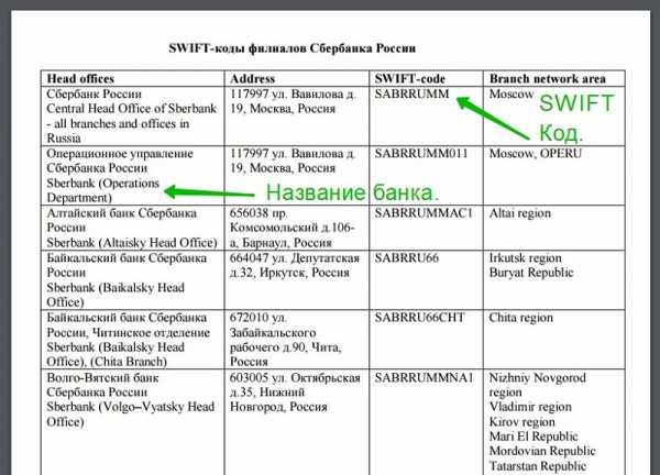 SWIFT-коды филиалов Сбербанка России | СберИнфо