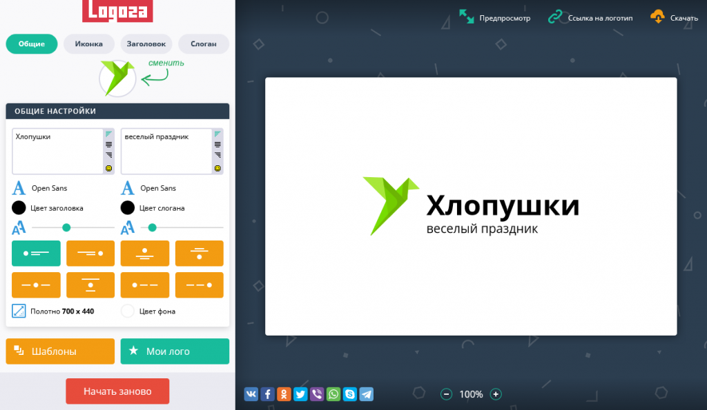 Логогенияموقع Логогения Это еще один отличный веб-конструктор логотипов в списке, который вы можете использовать сегодня. Сайт является бесплатным для использования и позволяет вам экспериментировать с различными значками, шрифтами и цветами.
