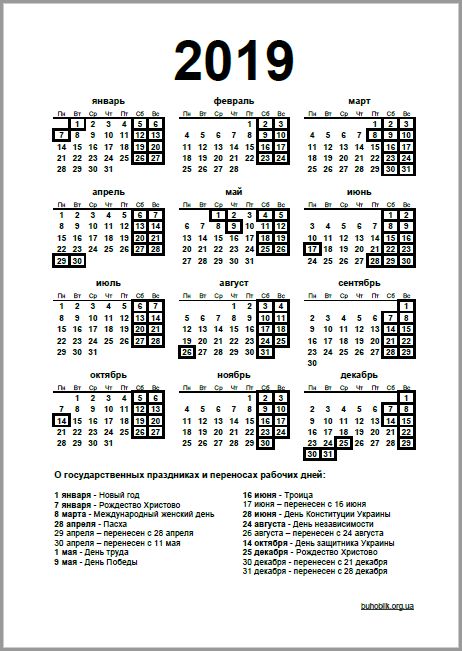 Производственный календарь 2019 📅: с праздниками и выходными — Бухонлайн