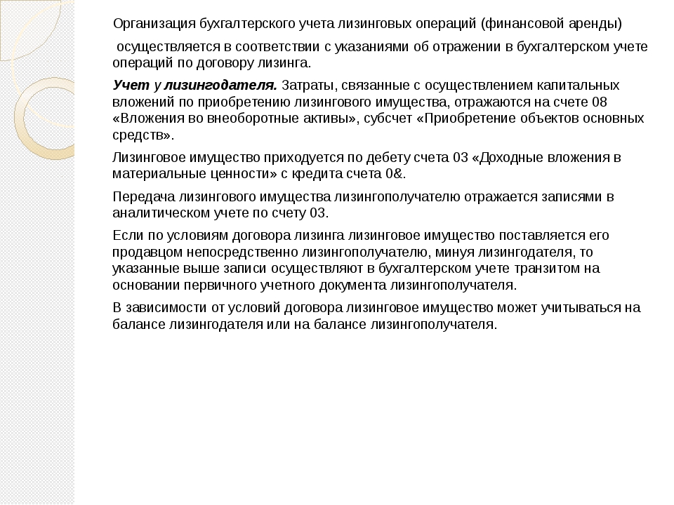 Налоговый и бухгалтерский учет в лизинге