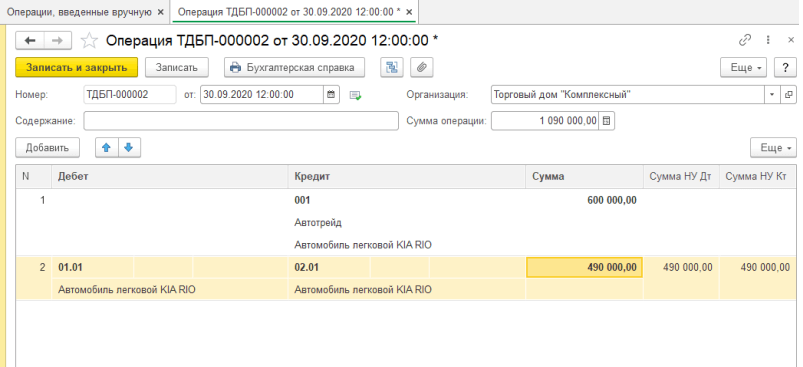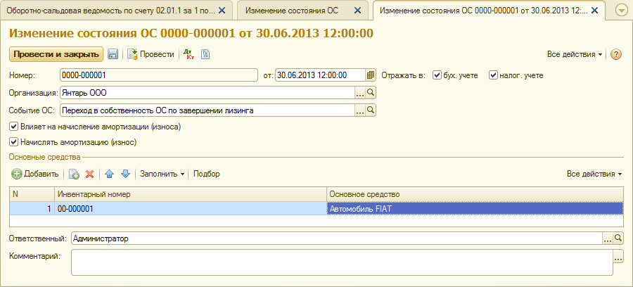 Если по условиям договора лизинга лизинговое имущество учитывается на балансе лизингополучателя, то при выкупе лизингового имущества и переходе его в собственность лизингополучателя при условии погашения всей суммы предусмотренных договором лизинга лизинговых платежей производится на счетах 01 «Основные средства» и 02 «Износ основных средств» внутренняя запись, связанная с переносом данных с субсчета по имуществу, полученному в лизинг, на субсчет собственных основных средств.