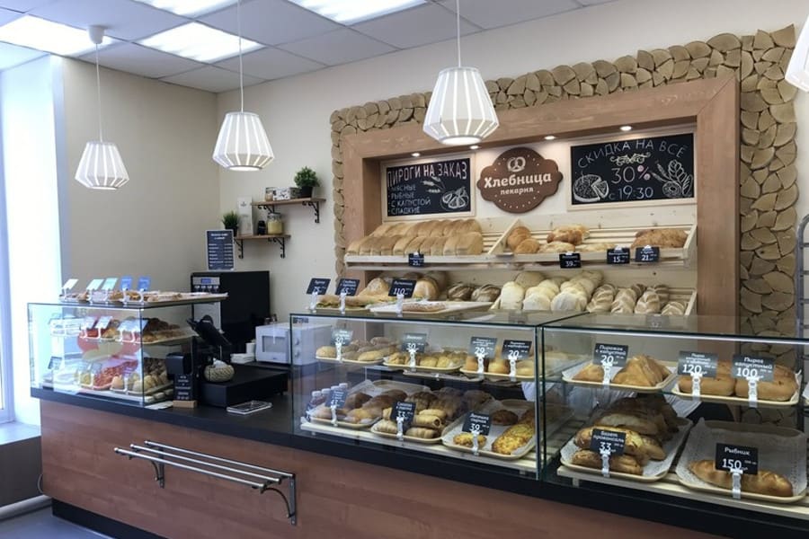 Пекарня – это учреждение или магазин, который производит и продает продукты питания на основе муки, выпеченные в печах. Пекарни продают продукты питания, такие как хлеб, рогалики, булочки, пирожные, выпечку, пироги, печенье, кексы, пиццу, пирожные и т.