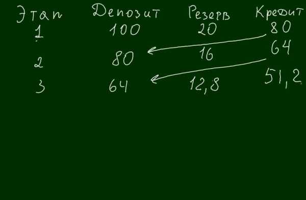Действие механизма простейшей модели мультипликатора депозитов видно на следующем примере.