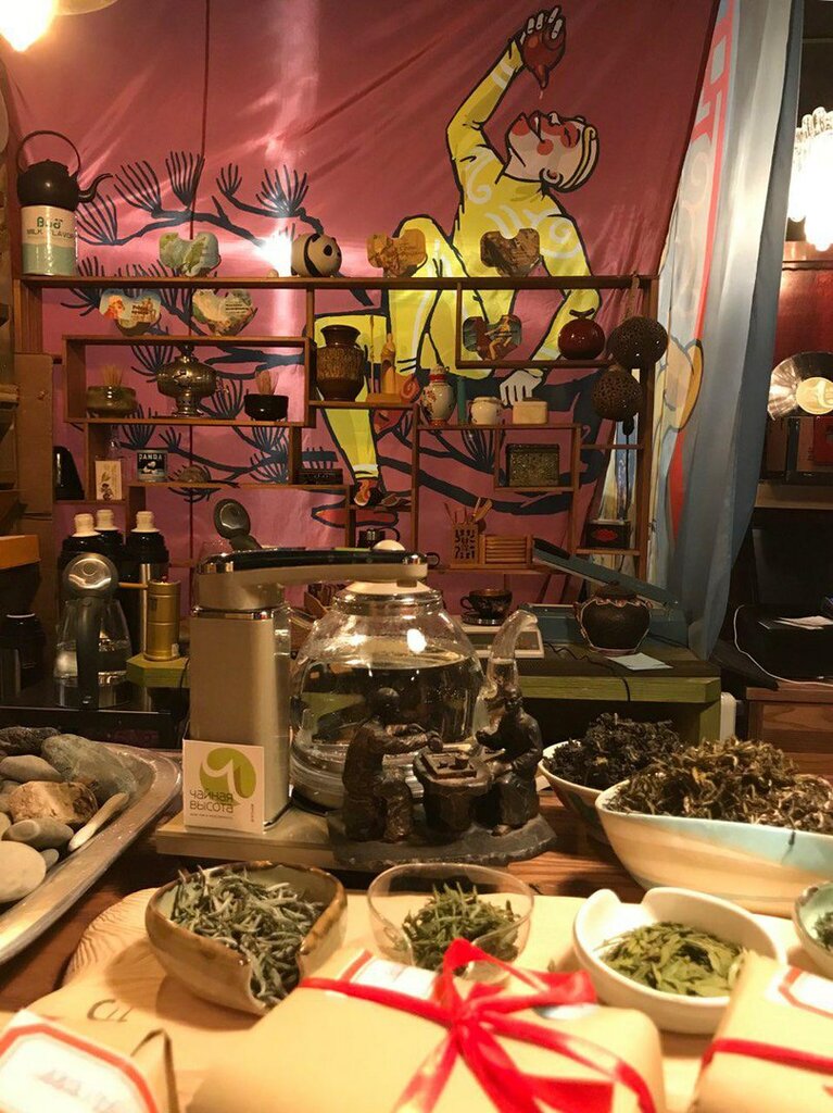 Чайная высотаМойчайЗдесь есть десятки сортов чая для домашнего чаепития, для церемоний и встречи гостей. Тут же продают аксессуары для чайных ритуалов — чаши, чайнички, подносы. Проводят церемонии и дегустации для желающих.