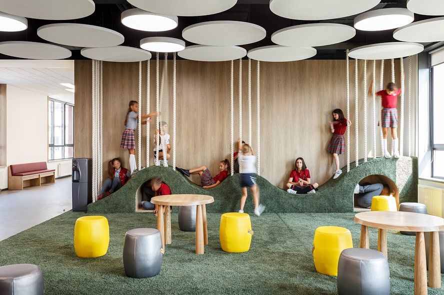 Да, даже баскетбольное кольцо может быть шикарным. В этой игровой комнате, спроектированной Эмили Хендерсон, качели, барабаны и баскетбольные кольца были адаптированы к современному дому. И он построен в масштабе для детей, которые используют пространство.