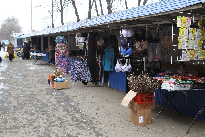 Уже практически готов первый мини-рынок на ул. Достоевского. Его условно называют «Обойный», поскольку торговать здесь будут обоями, клеем, красками, лаком. Здесь совсем недавно и велась торговля этим ассортиментом. Но проходила она на столах-развалюхах. А каждый торгующий укрывал свое торговое место от дождя и ветра полиэтиленовой пленкой. Со стороны посмотреть — бомжовый рай. Теперь здесь все кардинально изменилось. Преобразилось до неузнаваемости. Выросла воздушная конструкция с прозрачной крышей.