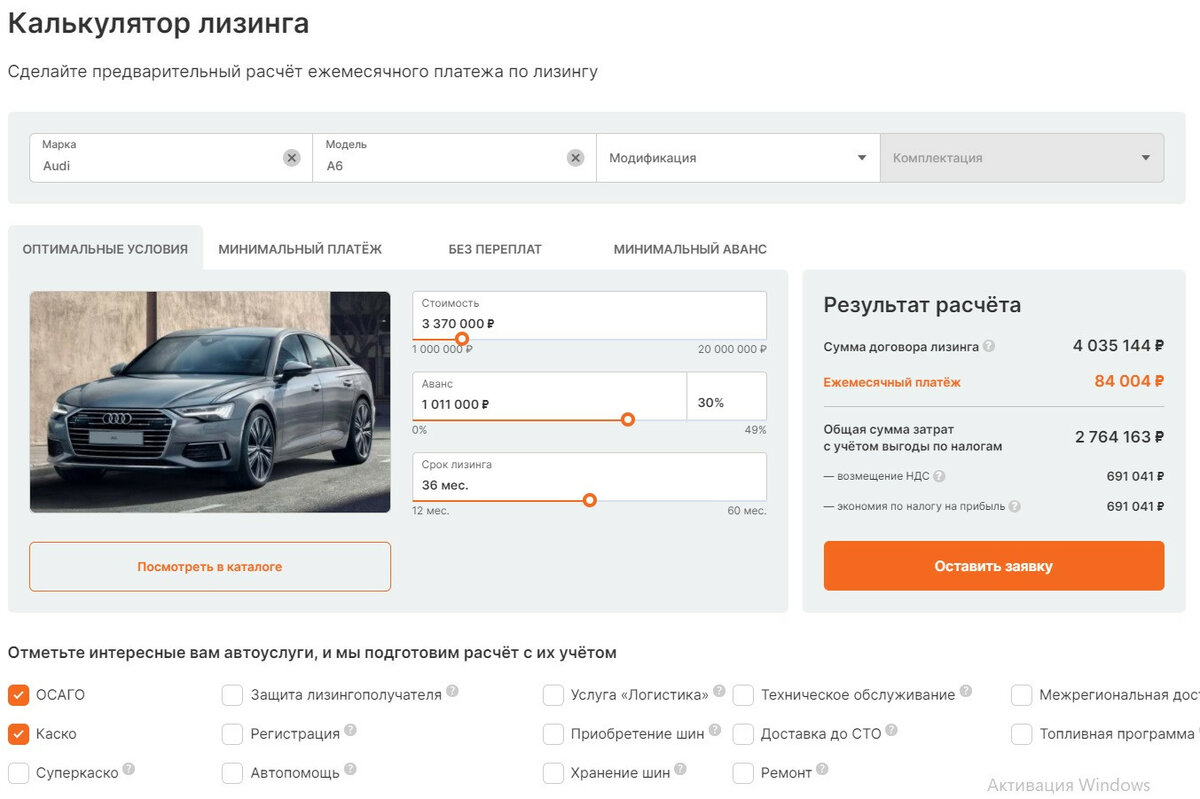 | Возраст автомобиля | - | на момент погашения лизинга возраст автомобиля не должен превышать 13–15 лет |