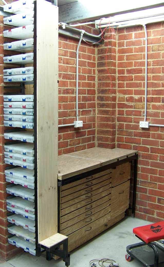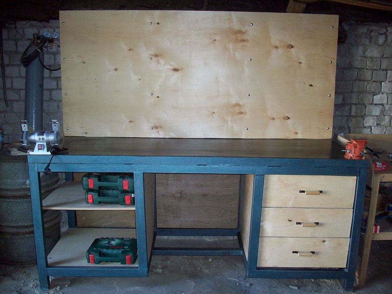 Он позволяет быстро превратить ваш гараж в мастерскую и скатывается к стене, чтобы освободить место для парковки. Показанная здесь версия начиналась как стандартная скамья на колесиках, сделанная из 2х4 и фанеры.