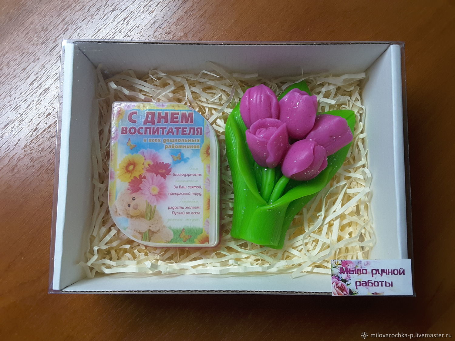Неплохой вариант рекламы своего труда, сделав небольшие пробные кусочки мыла, и подарить их своим друзья, коллегам и родственникам на праздник.
