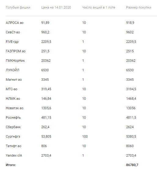 Фонды, которые следуют за топовыми индексами, включают в себя ценные бумаги, входящие в состав таких индексов. Так, российские голубые фишки можно увидеть в составе фондов «Тинькофф iMOEX» (TMOS), «Первая – Фонд Топ Российских акций» (SBMX), «ВИМ – Индекс МосБиржи» (EQMX), «АТОН Российские акции +» (AMRE), «Альфа-Капитал Управляемые Российские Акции» (AKME).