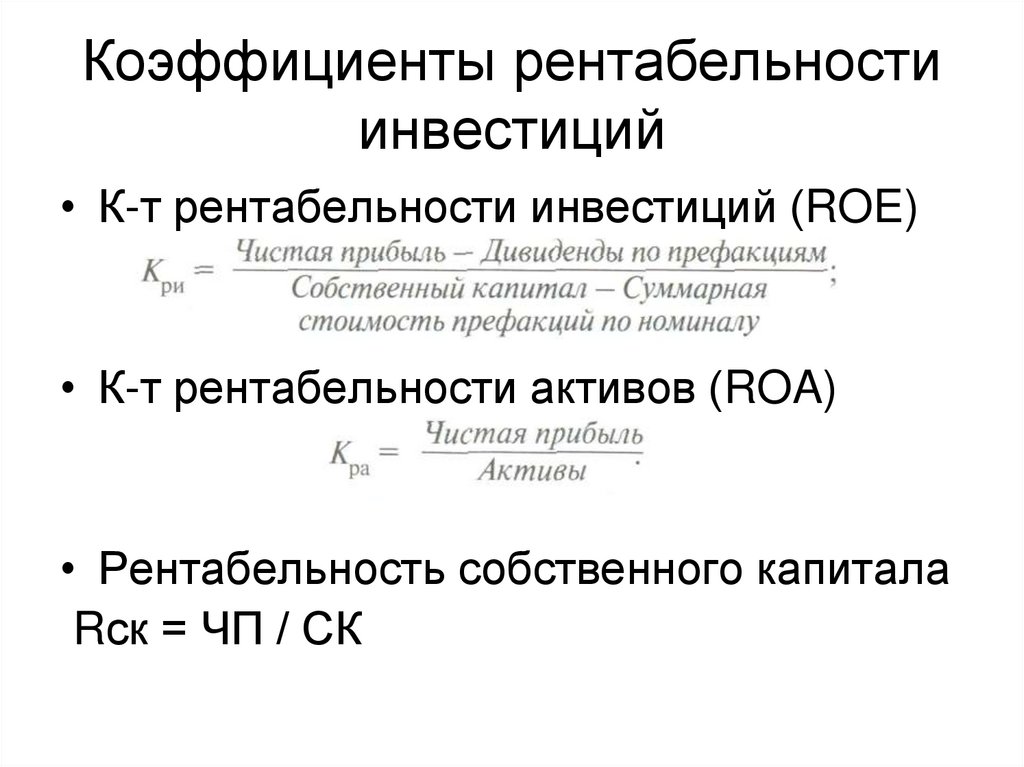 ROE — это один из трех основных коэффициентов, используемых инвесторами для расчета прибыли, которую они могут получить за свои деньги (два других — это прибыль на акцию и дивиденды).