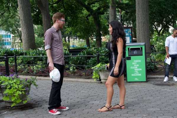 Наконец, Ник попробовал сняться с людьми самого разного роста. Волонтеры любезно проигнорировали его неприкрытую наглость, когда Ник приподнялся на носках, и даже слегка наклонили головы, чтобы дать ему относительное преимущество. Журналист уверен, что трюк с приближением к камере работает лишь до тех пор, пока окружающие достаточно откидываются назад. И снова все дело в шляпе.
