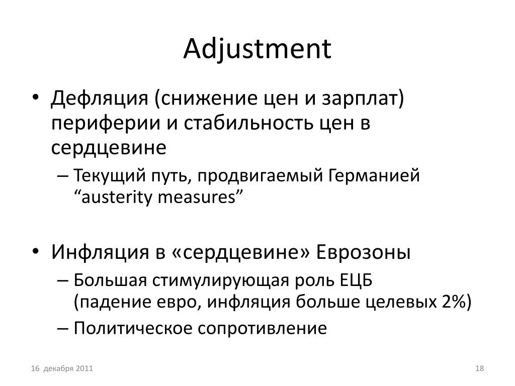 - рост экономики, исходя из реальных потребностей населения. Дефляция может сменить бурный, местами неоправданный рост потребления спокойным развитием экономики, исходя из адекватных и реальных потребностей;
