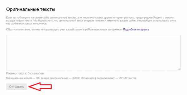 Оригинальные тексты Яндекс — Вставьте текст в специальную форму