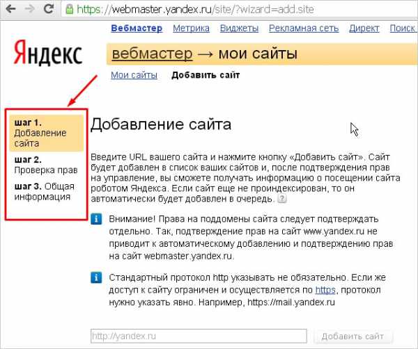 Если сайт ещё не подключен к Вашей панели Вебмастера, нужно его добавить и подтвердить права на управление им одним из предложенных способов, после чего действуете по описанной выше схеме.