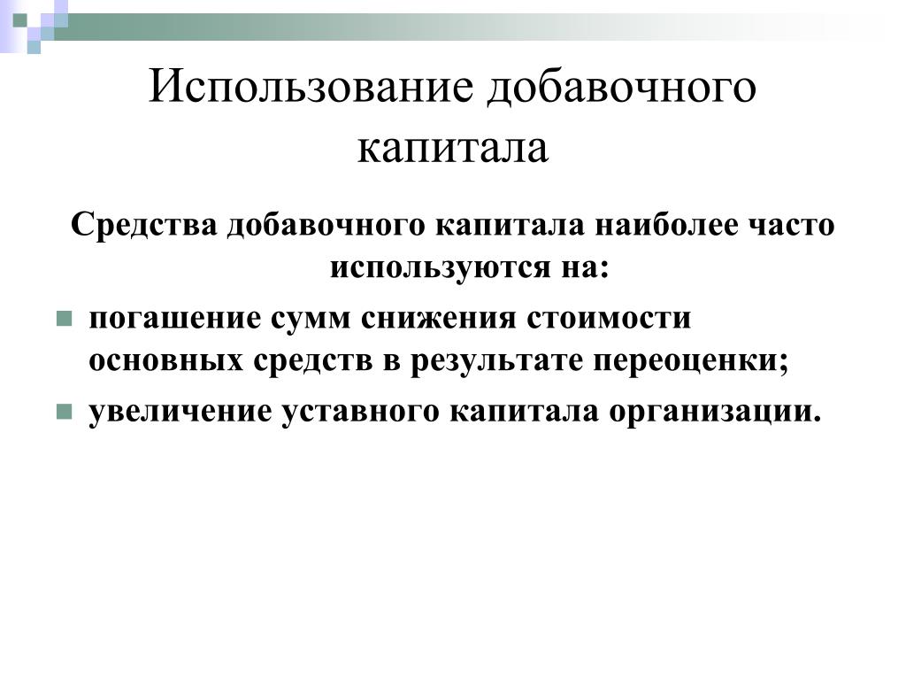 Если же резерв уже погашен за счет дополнительной инвестиции, то такая возможность в будущем теряется.