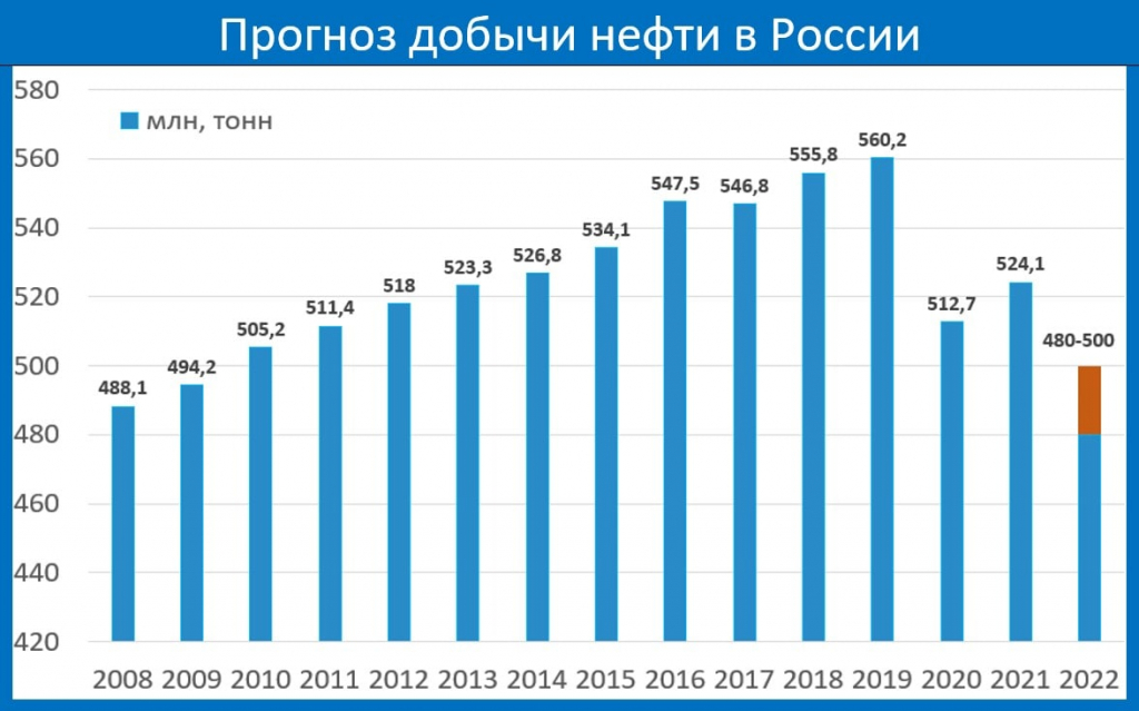 Напомним, что в 2018 г. объем добычи нефти в России (включая газовый конденсат) вырос на 1,7% по сравнению с 2017 г. и составил 555,9 млн т.