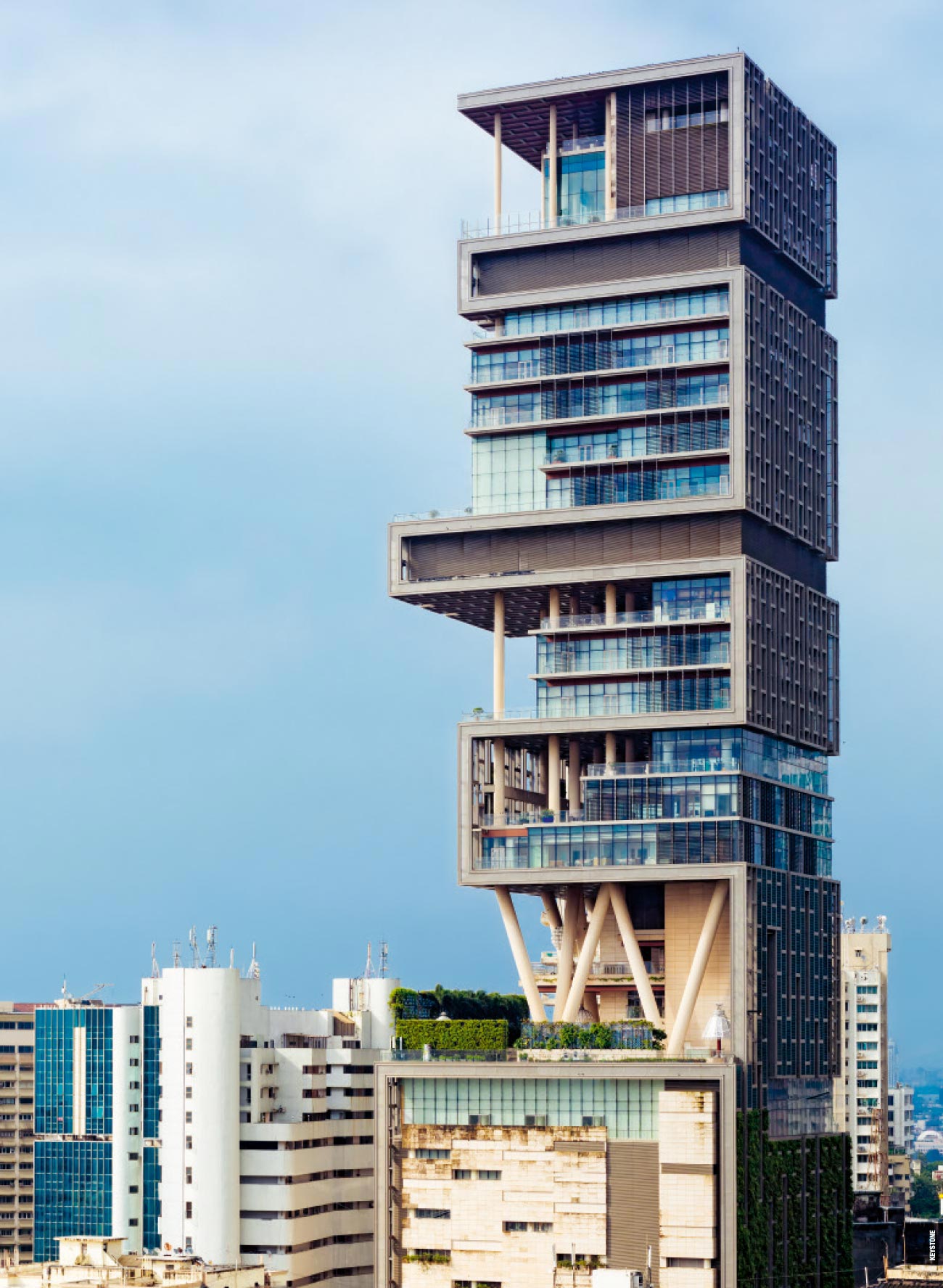 В 2010 году Мукеш построил для своей семьи 27-этажный частный дом высотой 173 метра. Высота здания достигает высоты 60-этажного стандартного дома.