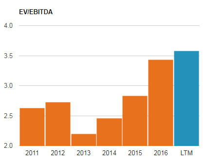 к. получив EBITDA компании много тратят из нее на бурение и геологоразведку просто чтобы поддерживать добычу), в то время, как у компаний с низким значением мультипликатора – медленный рост или даже падение.