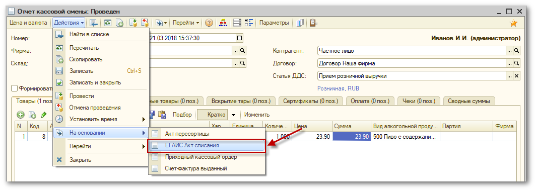 - Постановка алкогольной продукции и пива на баланс в ЕГАИС.