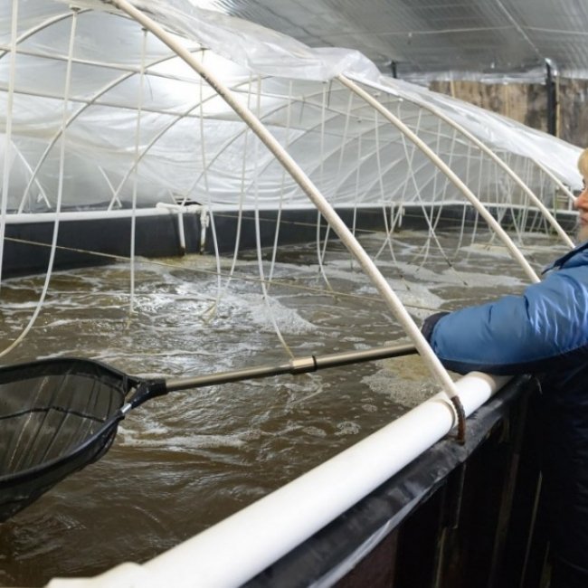 «Малек весит меньше грамма, за полгода выращиваем до 30 грамм и до 30 сантиметров, — говорит он. — Консультант по США разработал рацион: картофель, мука, крахмал, рыбий жир, дрожжи, мы приобрели оборудование для гранулирования и теперь самостоятельно изготавливаем натуральный корм».