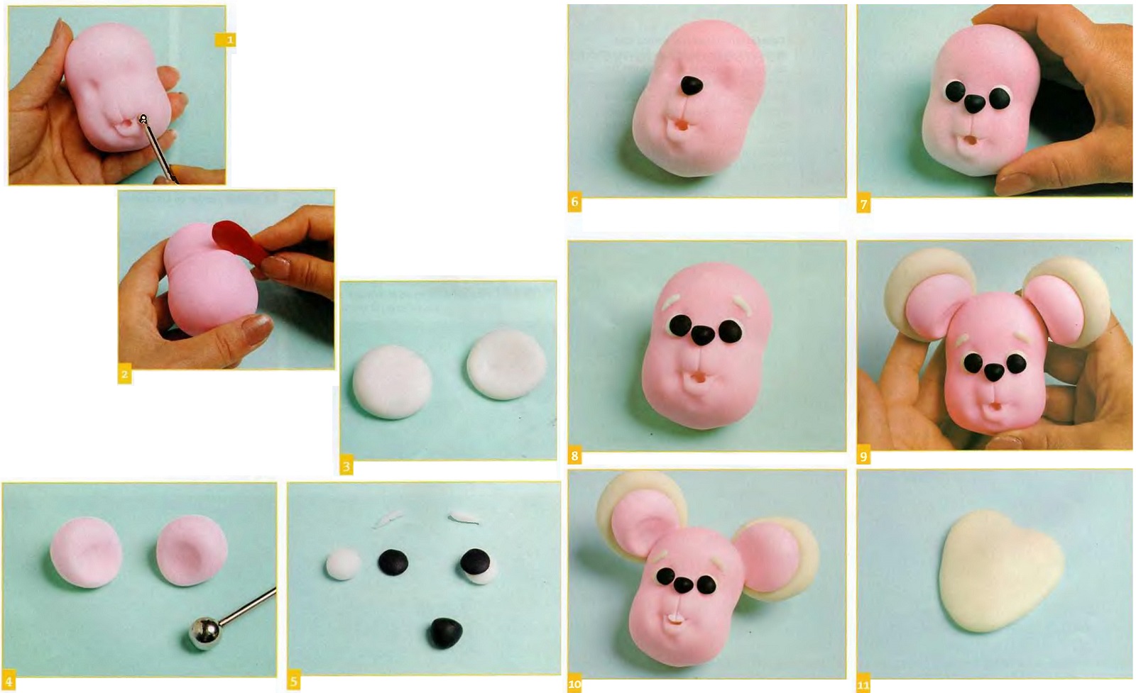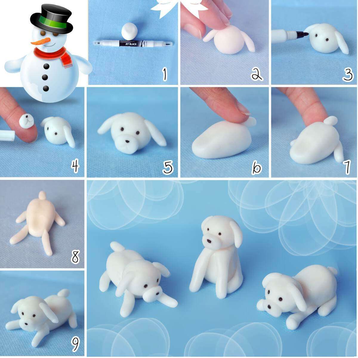 А это белый медведь из пластилина пошагово. Такие картинки с поэтапной лепкой удобны для начинающих лепить из пластилина.