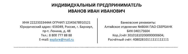 Фирменный бланк индивидуального предпринимателя бланк
