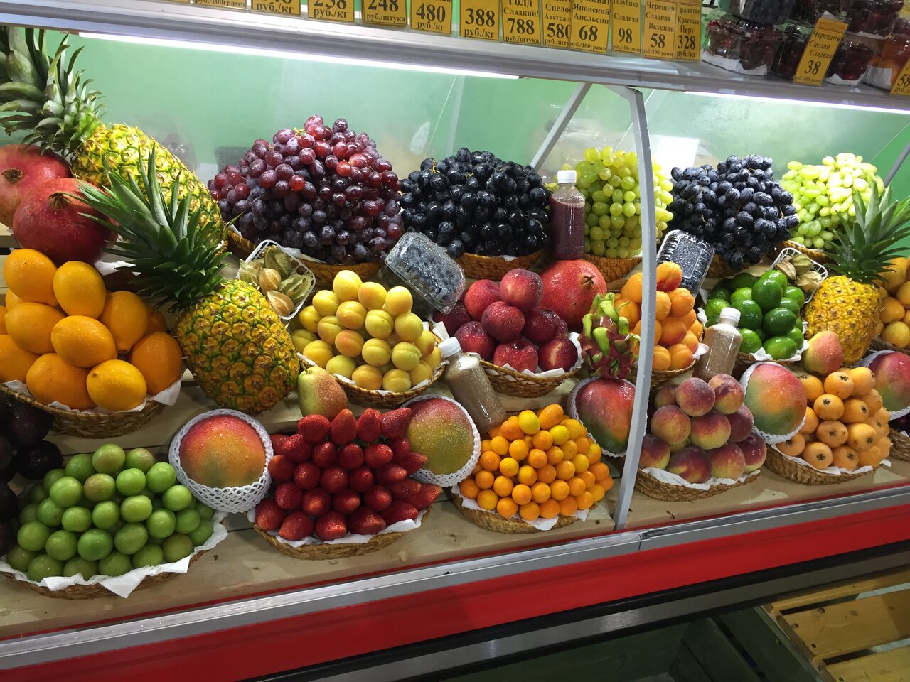Он предлагает своим покупателям ассортимент овощей и фруктов, поставляемых напрямую из стран Средней Азии, юга России, Таиланда, Ирана и Вьетнама.