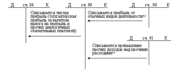 В конце года записями декабря на субсчет 84.1 списывается сумма чистой прибыли или убытка со счета 99 “Прибыли и убытки”. Записями января остатки с субсчета 84.1 переносятся на субсчет 84.3 “Нераспределенная прибыль в обращении”.