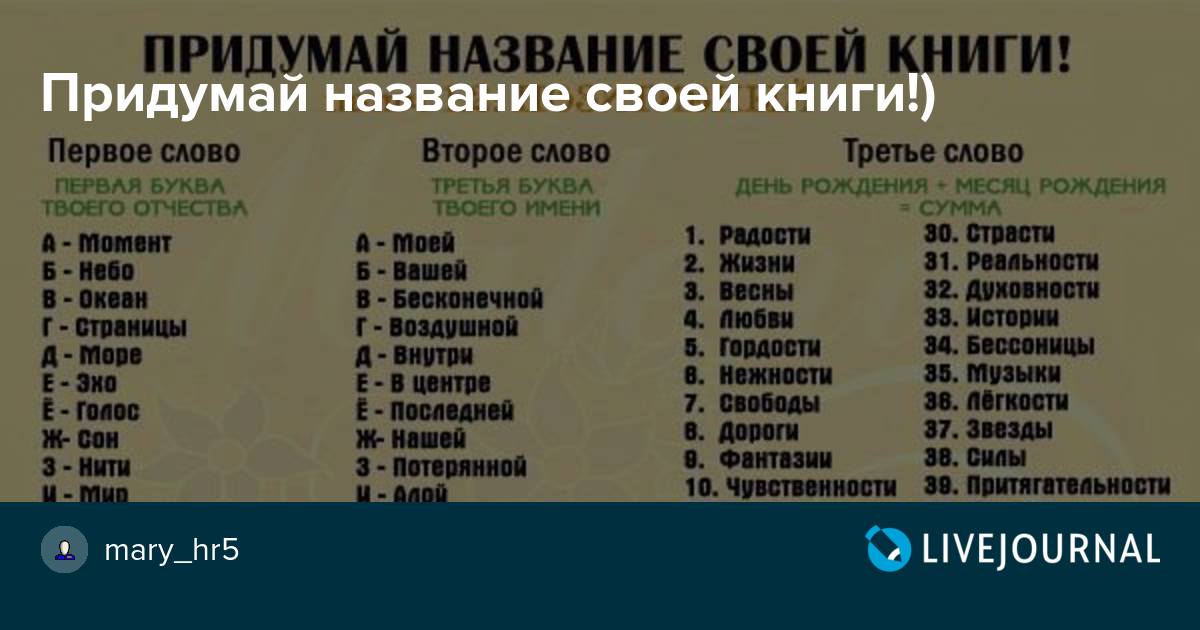 Генераторы случайных имен и идеи для написания