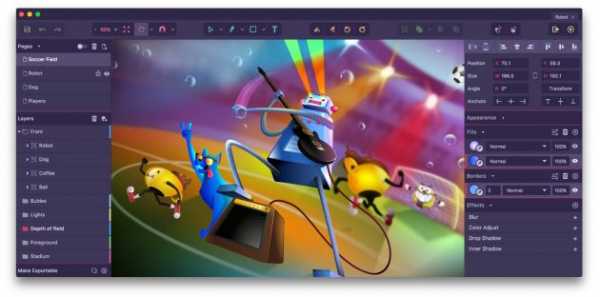 Gravit можно также использовать для редактирования растровой графики. Есть функция обрезки, масок, блендинга, ресайза и добавления фильтров, что очень пригодится при проектировании интерфейсов, создании макетов веб-страниц и полиграфической продукции.