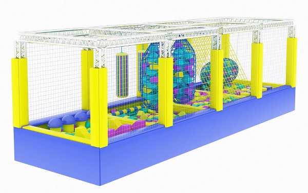 Детский лабиринт. Обычно они изготавливаются на заказ по индивидуальным размерам. Минимальный размер лабиринта, который соглашаются изготавливать производители, обычно составляет около 15 квадратных метров. Надувные батуты. Это одно из самых любимых развлечений ребят, поэтому отказываться от наличия батута не стоит. В целях безопасности каждый батут должен быть обнесен специальным защитным ограждением.