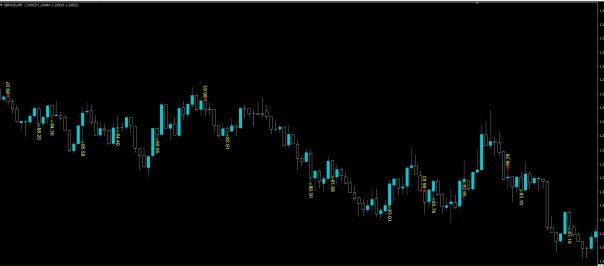 После того, как установите индикатор в терминал и наложите его на график, вы увидите возле свечей зелёные и красные точки.