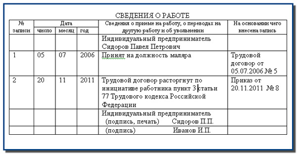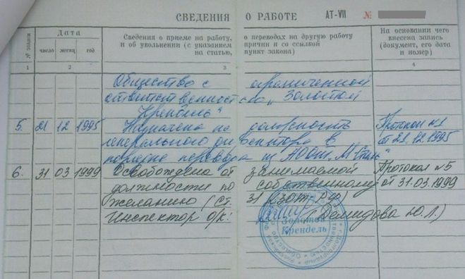- Внесение записи в бумажную трудовую книжку (если она ведется)