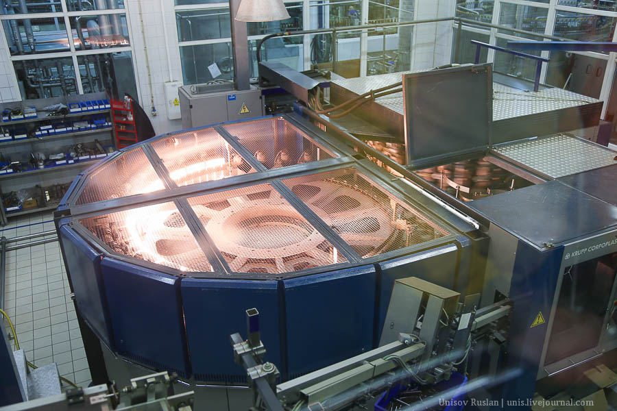 31. Снова снимок преформ, только они уже находятся в другом цеху и через несколько минут превратятся в бутылки.