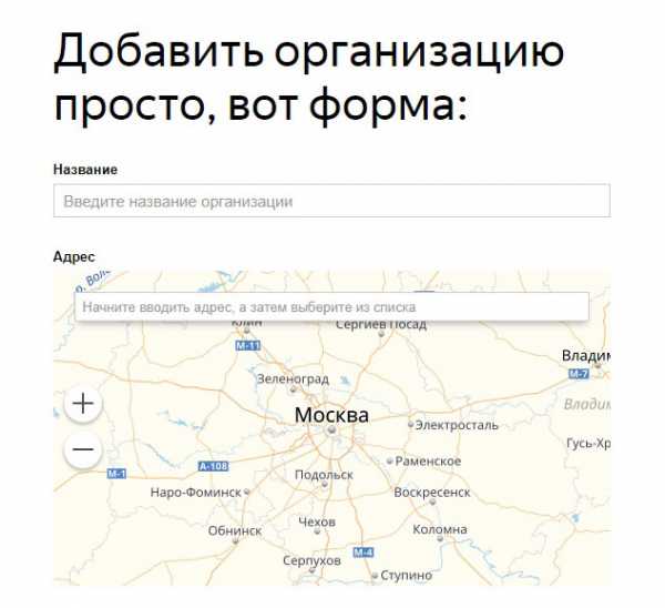 Адреса и организации Yandex WebmasterНа странице добавления организации можно прочитать информацию, что все организации (компании), которые содержаться в Яндекс Справочнике используются при поиске в Яндекс Картах. Это то, что нам нужно.