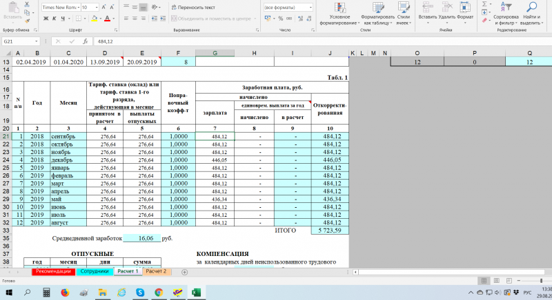 Как рассчитать отпускные и остатки зарплаты в месяце
