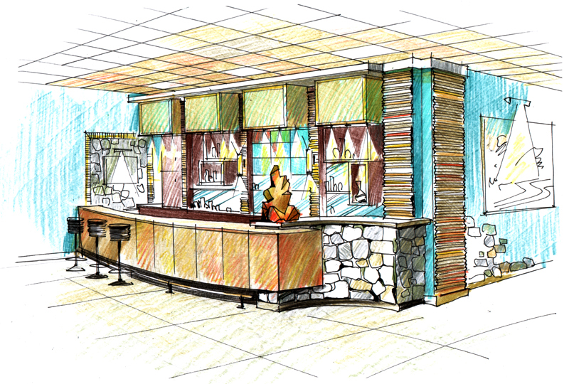 - Ваш дизайн должен отражать концепцию и атмосферу, которую вы хотите создать. Бары — это социальные, яркие и развлекательные места, поэтому подумайте, как ваш дизайн продемонстрирует это. Сколько у вас будет сидячих мест? Какую мебель вы будете использовать? Как все будет раскладываться?
