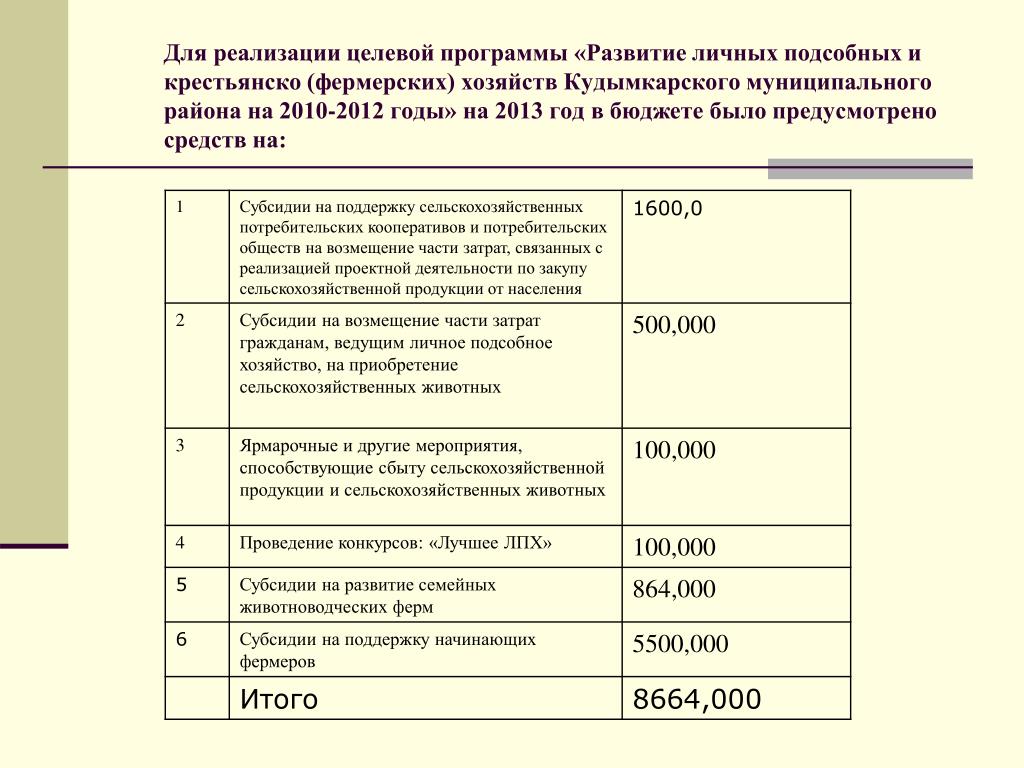 Возмещение стоимости молодняка крупного рогатого скота, приобретенного ЛПХ