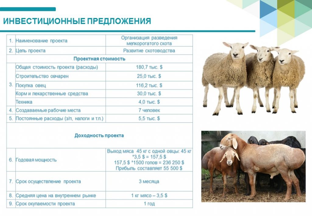 5. Разведение коз и овец — прибыльный бизнес. Процесс не очень трудоемкий при кормлении из самокормушек и наличии пастбищ в летний период. Побочной продукцией является пух и шерсть, которые используются для вязания шалей, беретов, свитеров, варежек, носков, а овечья шерсть нужна для изготовления валенной обуви. Затраты на изготовление овчарни минимальные. Спрос на козье молоко, как диетический продукт, очень большой, мясо также пользуется большим спросом.