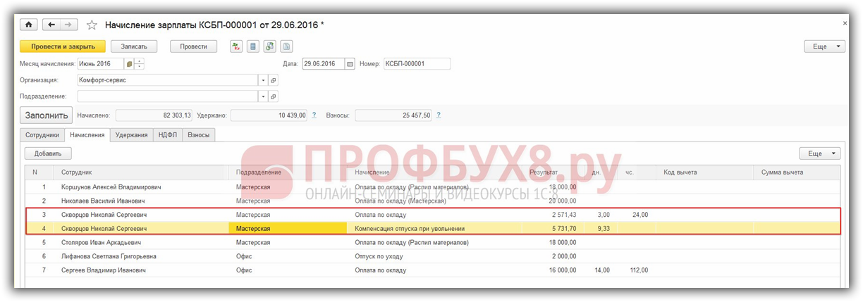 Как начислить компенсацию при увольнении в 1С ЗУП 8.3.?
