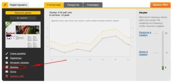 В меню управления сайтом необходимо совершить переход в раздел «Домены».