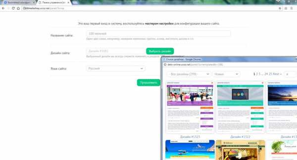 Процедура создания сайта окончена. Открывается мастер настройки, который подсказывает первые шаги по оформлению. В первом окне выбираем название, язык и дизайн. В библиотеке ucoz представлены шаблоны практически на любую тему и сгруппированы по категориям. Во втором окне можно отметить нужные страницы, хотя это не полный список.